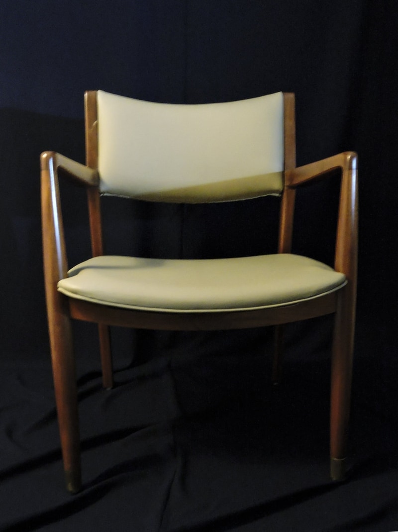 Está pieza fue retapizada en polipiel y se recuperó la madera de caoba original.