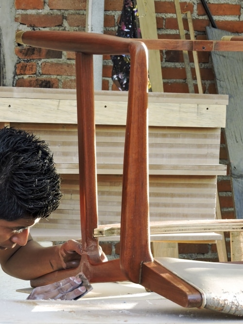 Un clásico. Hecha a mano en madera de cedro. Esta silla fue diseñada con asientos cómodos para largos periodos de uso y se destaca por su moldeado y curvado, detrás de la rejilla.